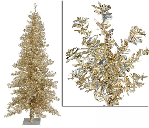 6' Pre-Lit Champagne Wide Cut Tinsel Artificial Christmas Tree - Clear Lights Description